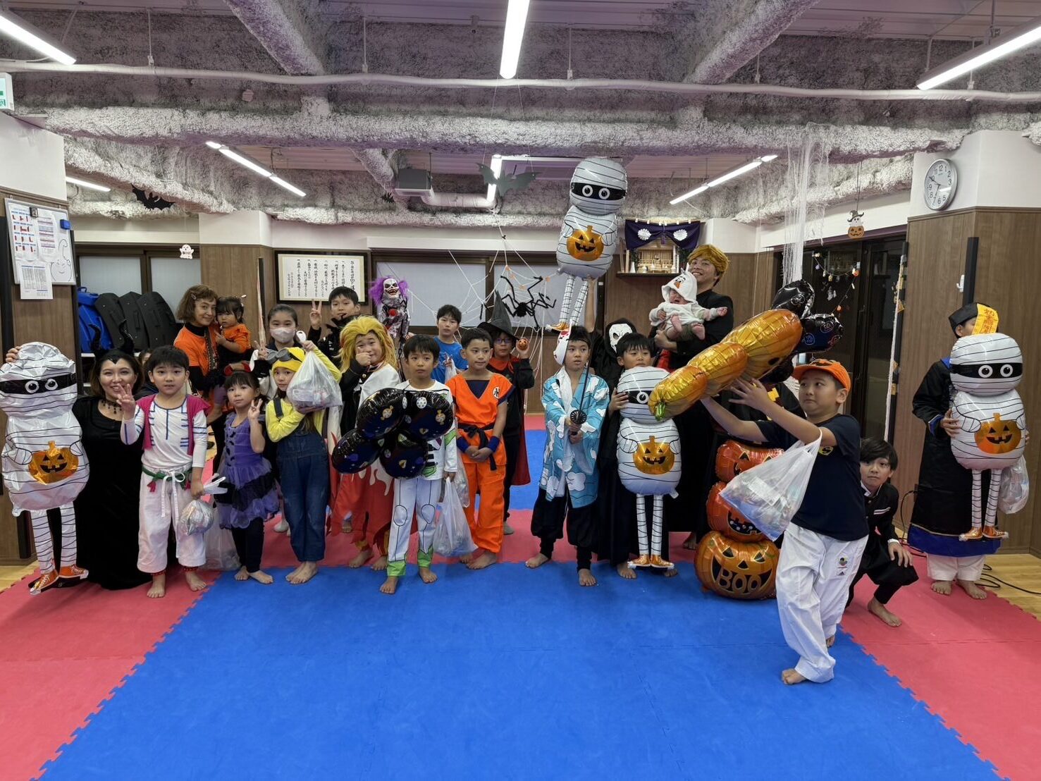 ハロウィンイベントを開催いたしました🎃👻 先生たちも含めてみんなで仮装して練習🧙🪄 鬼滅の仮装が1番多く、1つ1つの攻撃に血鬼術やそれぞれの呼吸の型を叫びながら稽古行いました! 最後はみんなでミイラゲーム👻にドラゴンボー 🎃ハロウィンイベント👻